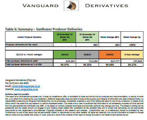 SAGIS Weekly Producer Deliveries Dec 11, 2024 VANGUARD – SAGIS Weekly Producer Deliveries – 4 December 2024